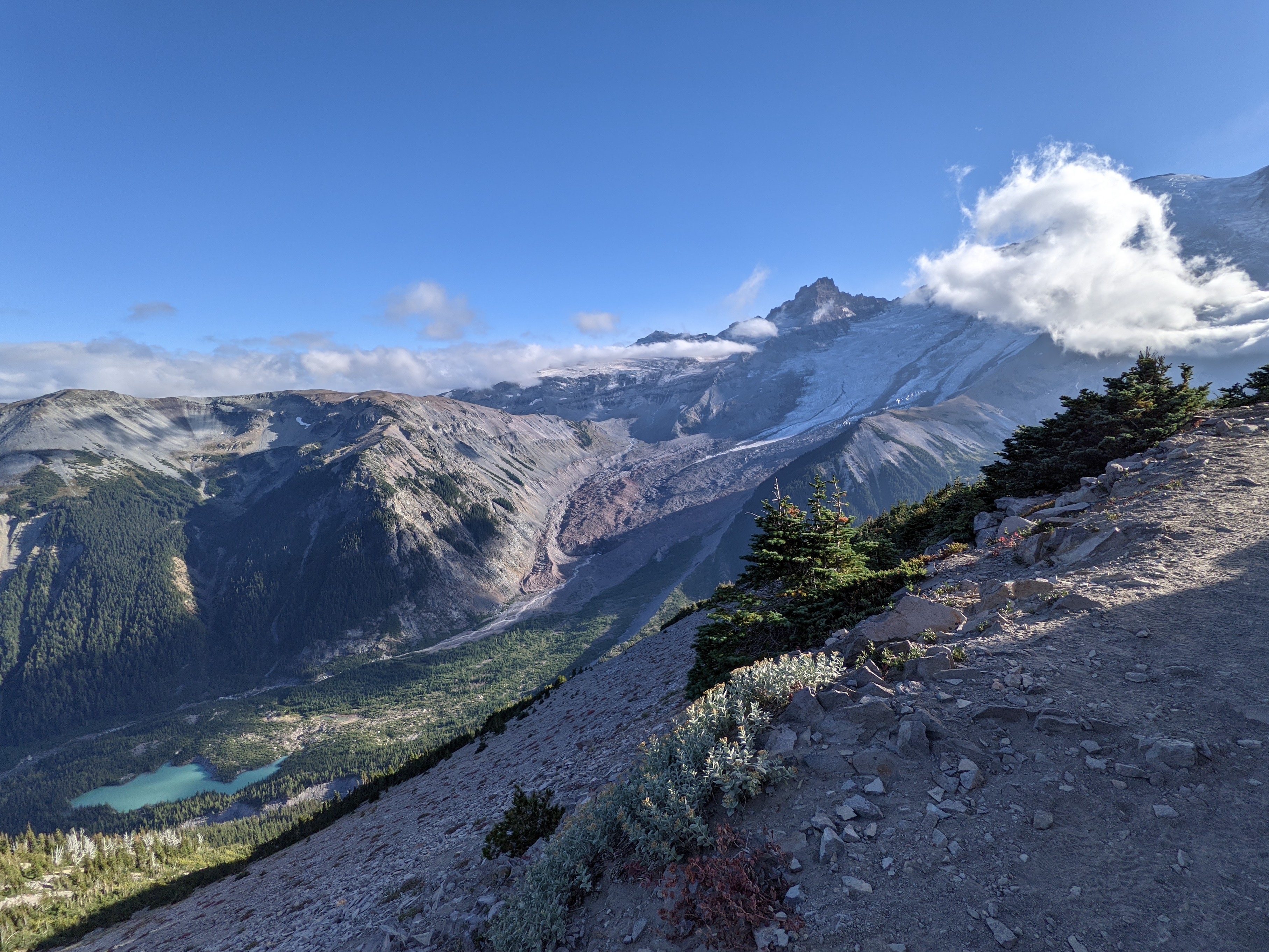 You can also see a lake in this valley that is bright blue because of glacial flour.