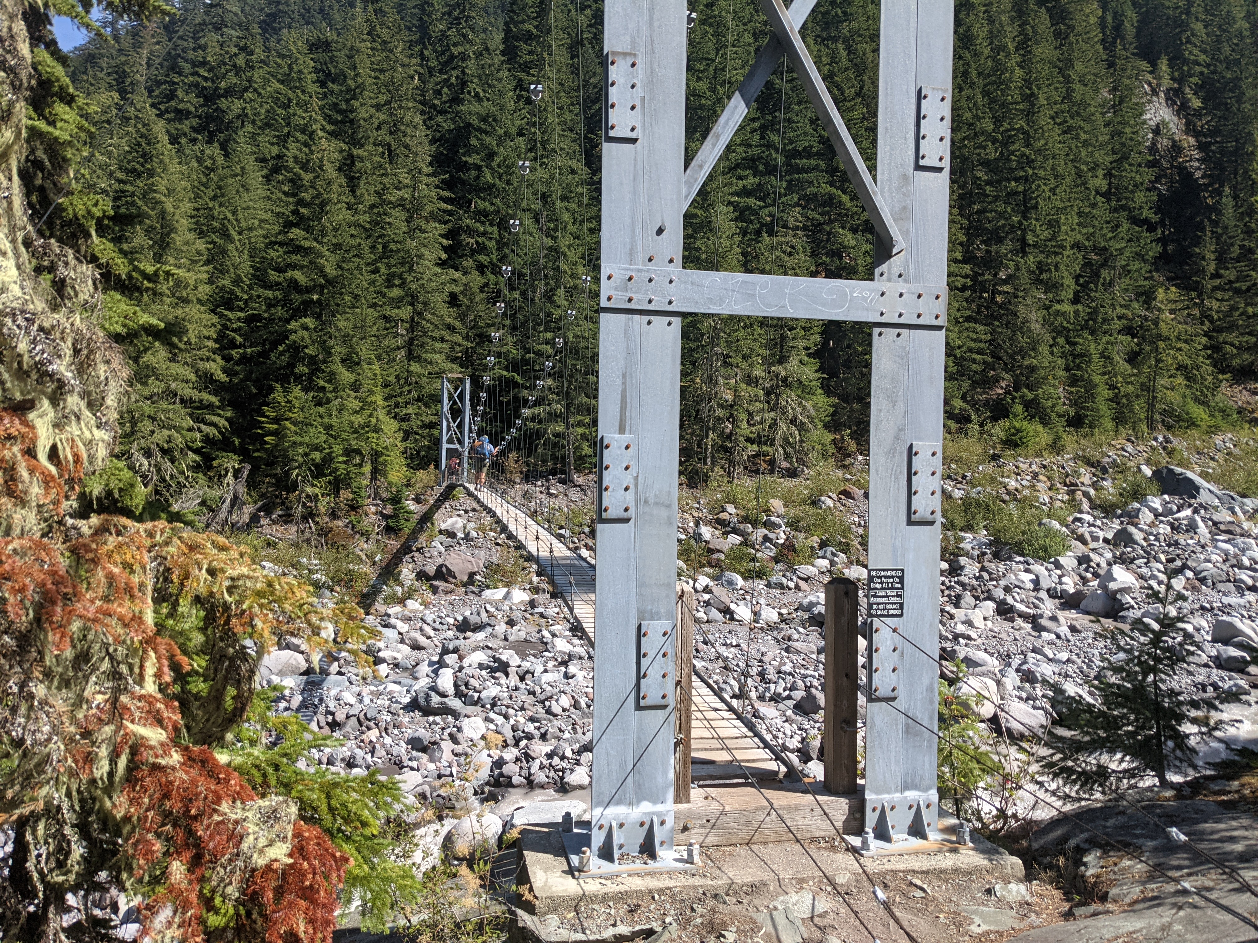This suspension bridge allows hikers to cross over a river. This part of the river is too wide for a log bridge.