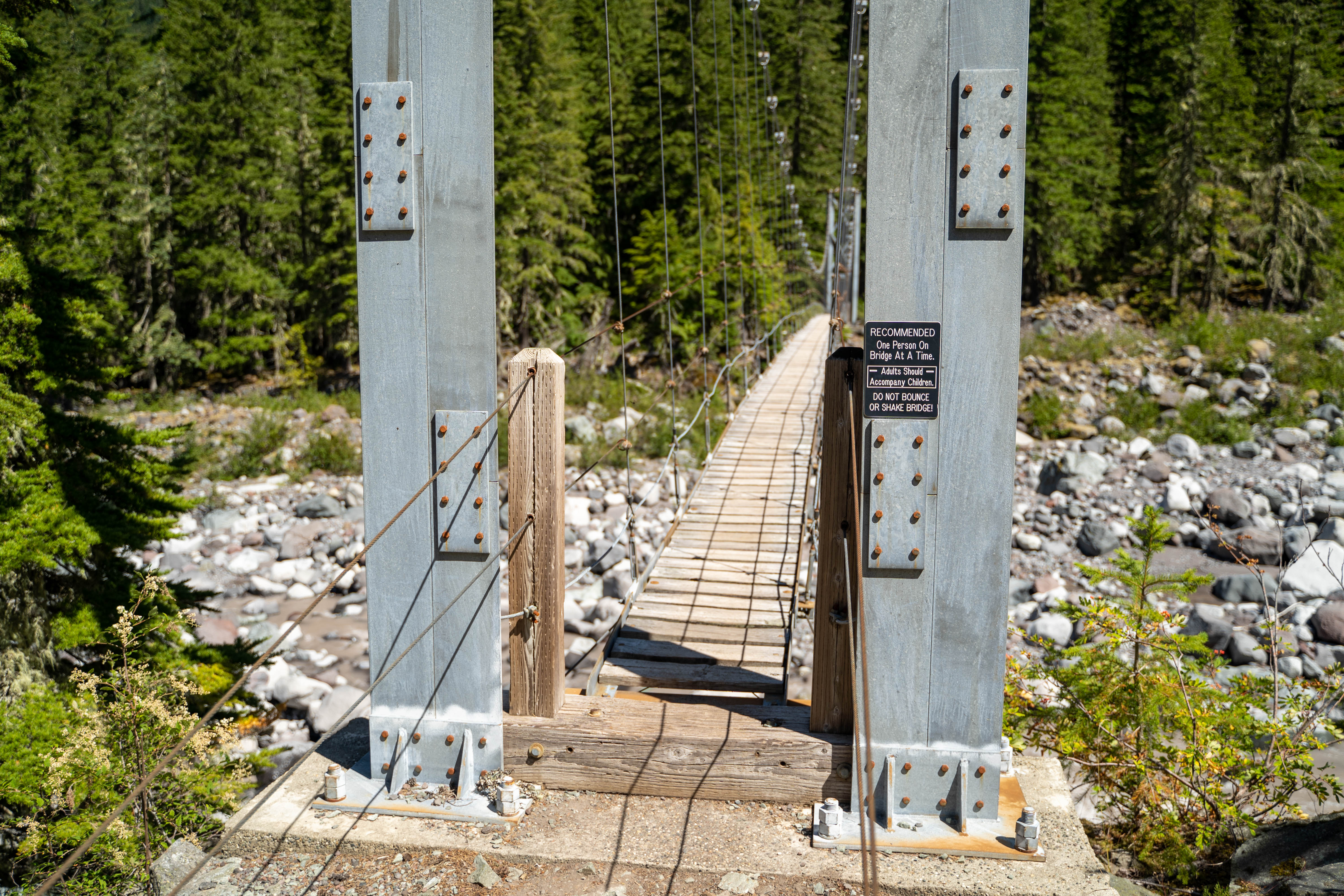This suspension bridge allows hikers to cross over a river. This part of the river is too wide for a log bridge.