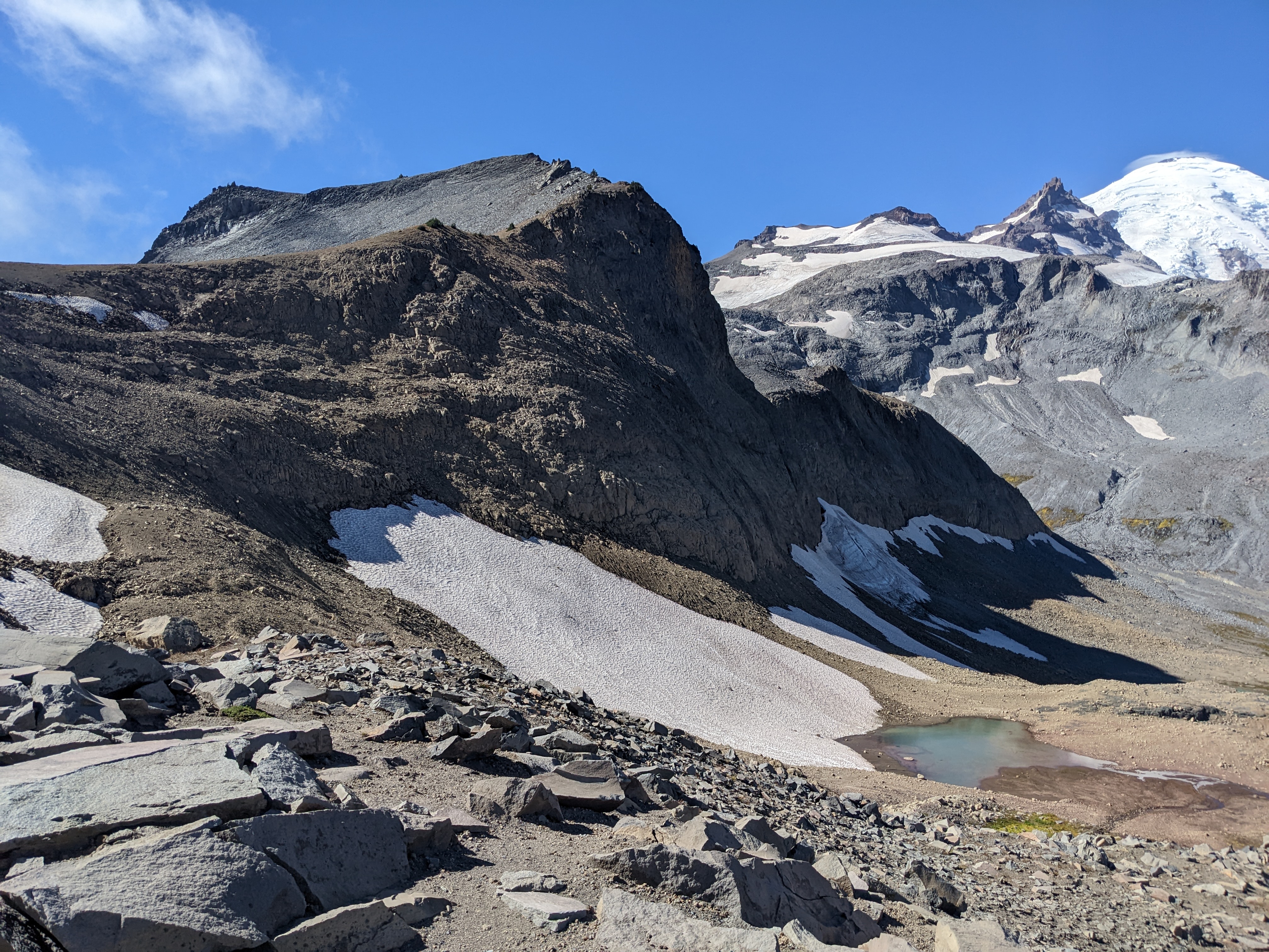 The Sarvant Glaciers are a chain of very small glaciers. Even in September, just before the winter snow begins, there is still some snow and ice.