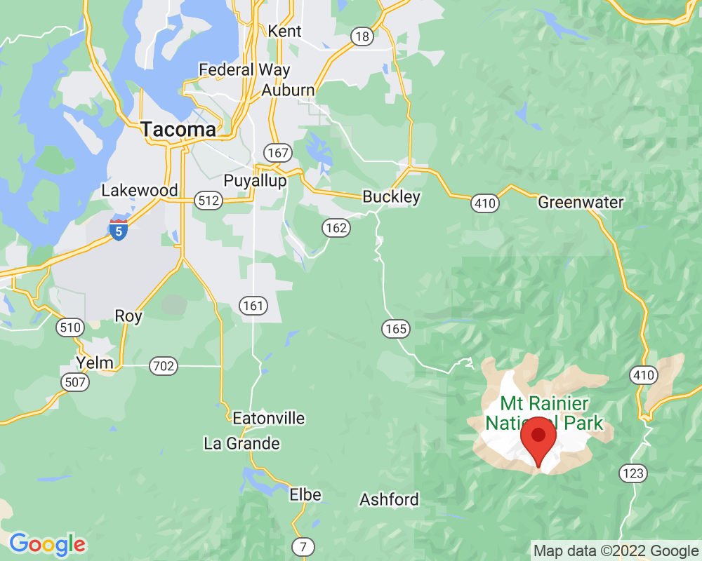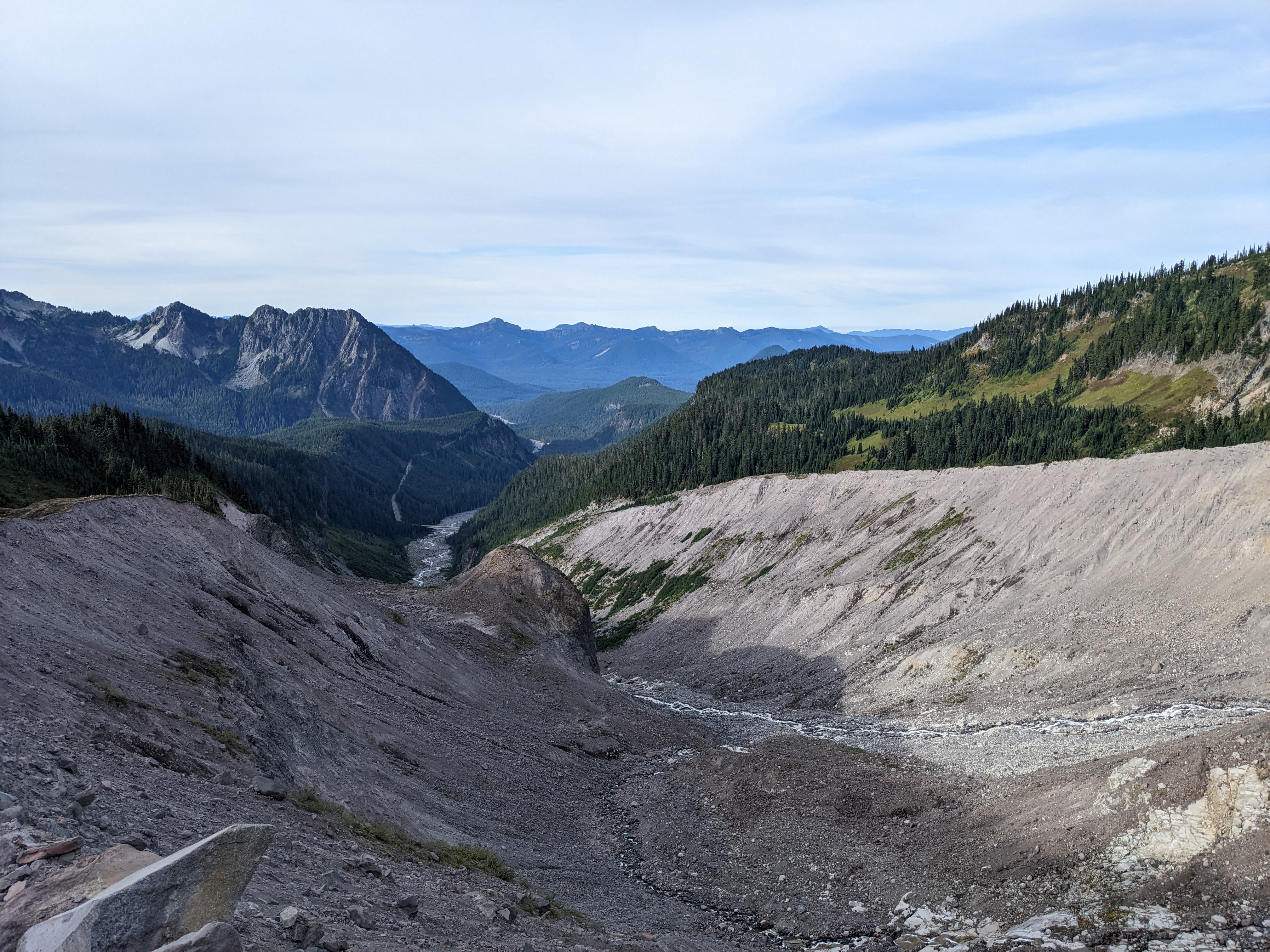 You can see the path of Nisqually River from just below the glacier down to where it cuts through the forest.